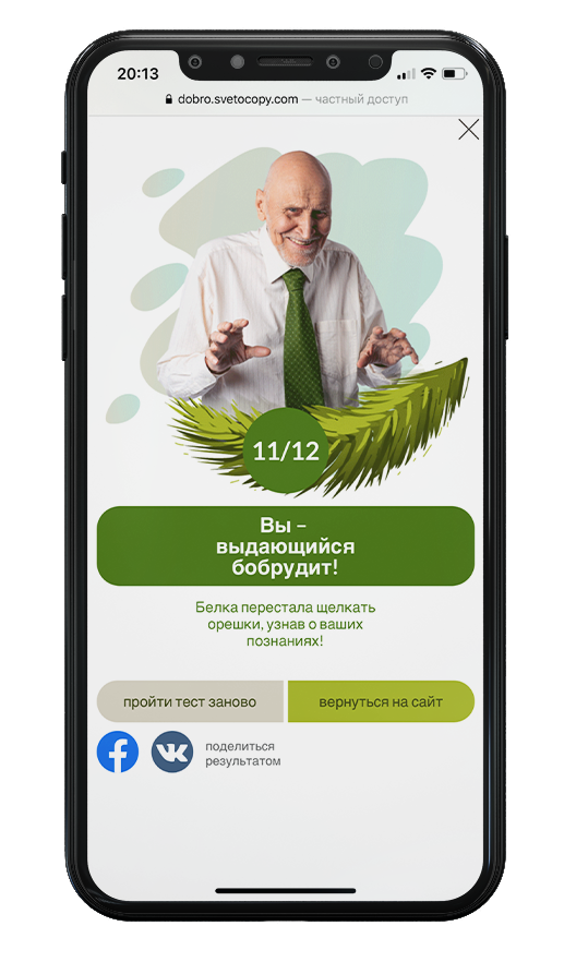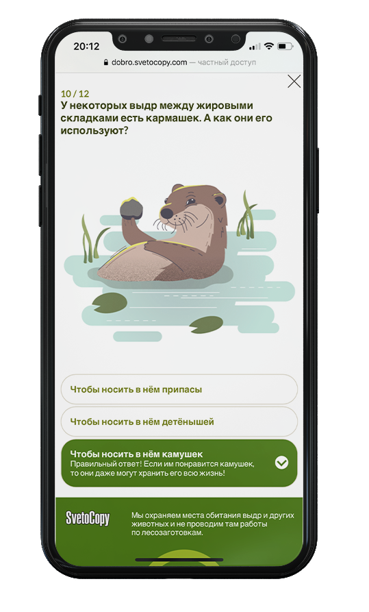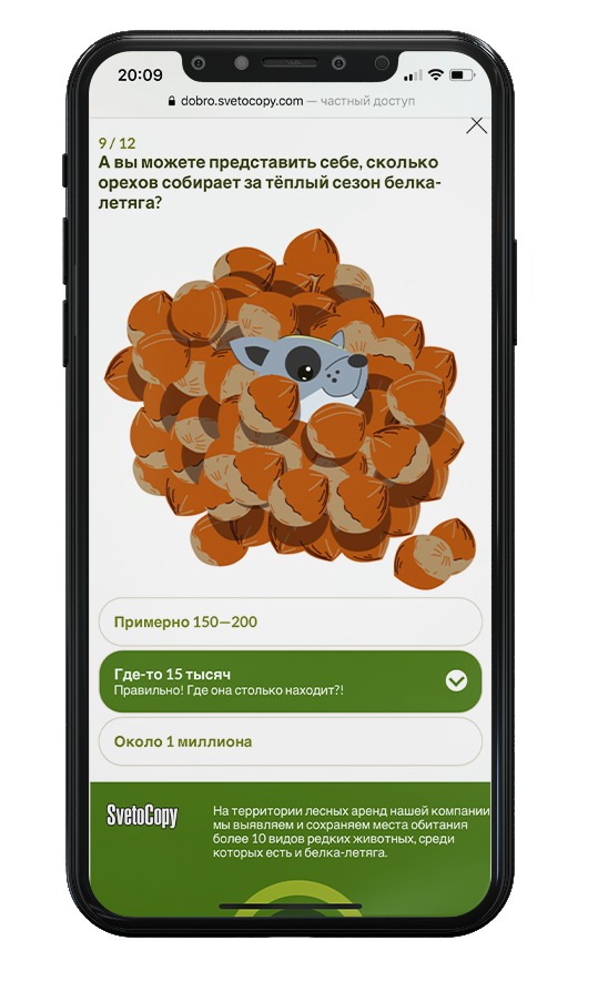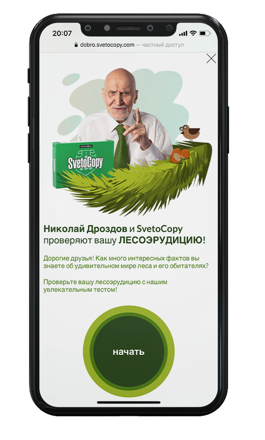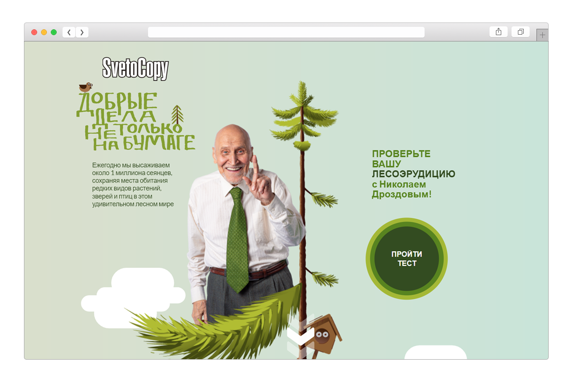 На сайте пользователи могли пройти специальный тест от Николая Дроздова и SvetoCopy и проверить свою ЛЕСОЭРУДИЦИЮ, открыв для себя удивительные факты о лесе и его обитателях.