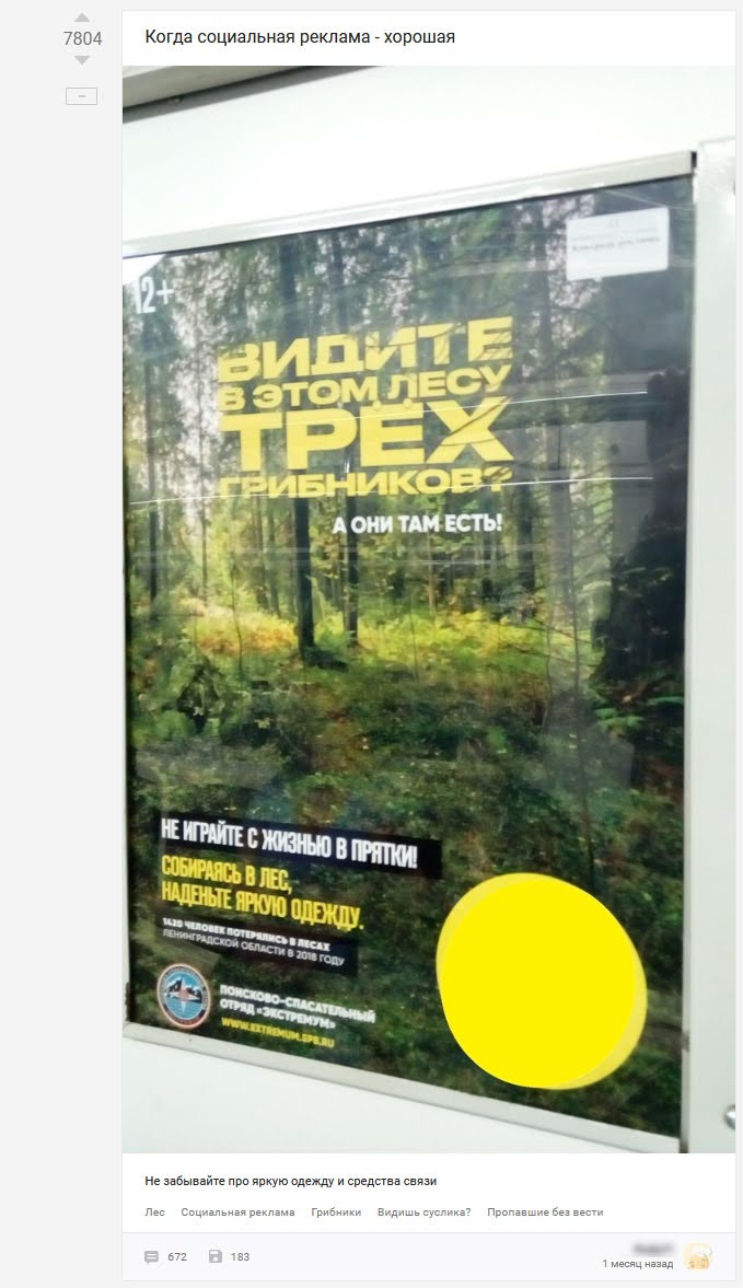 Разработать вижуал к началу грибного сезона в Ленинградской области, призывающий людей помнить