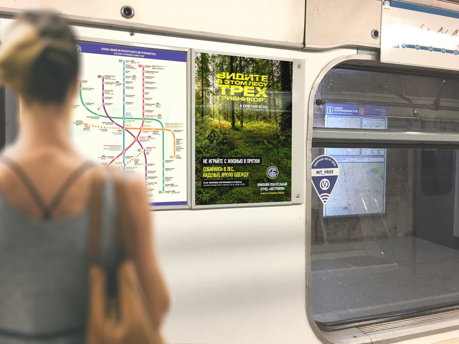 в Ленинградской области, призывающий людей помнить о безопасном нахождении в лесу.