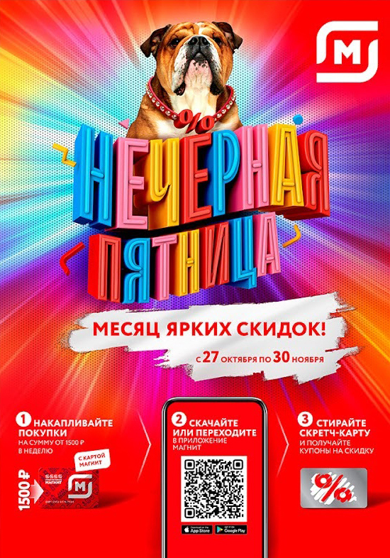 В период традиционного сезона распродаж «Чёрной пятницы» почти все стандартно облачаются в чёрный цвет, сливаясь в одну чёрную массу, поэтому наша акция стала не чёрной, а яркой, как и сам бренд «Магнит».